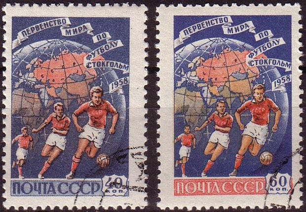 Не удивительно, что на Олимпиаде 1928 года Венгрия выиграла девять Олимпийских медалей — впервые с 1912 года, когда была завоевана последняя на тот момент венгерская награда. Возможно, первые марки с футбольной тематикой в СССР были выпущены к Чемпионату мира 1958 года, который проходил в Швеции. Марки были выполнены в двух цветах, красном и синем, и изображали трех футболистов в форме сборной Советского Союза и стоили 40 и 60 копеек.