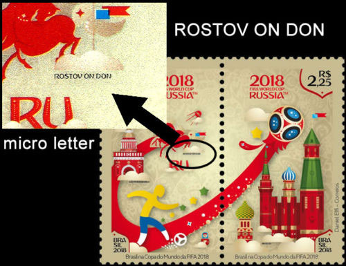 Почта Бразилия также отметилась филателистическим выпуском к мундиалю-2018. И что любопытно, на марке особое место уделено городу Ростову.
