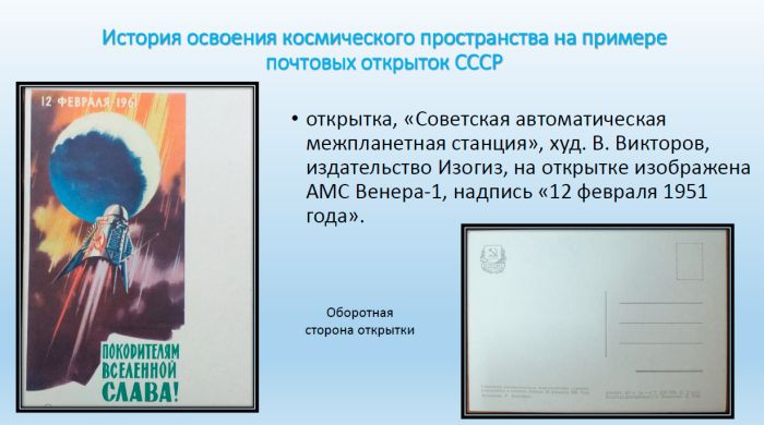 Представляем на ваш суд первую конкурсную работу «История освоения космического пространства на примере почтовых открыток СССР», которую прислал Р.И. Ланкин.
