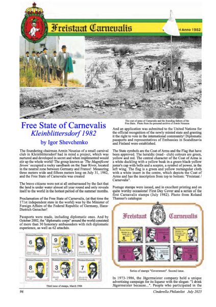 Публикация о Карнавалисе в июльском номере «The Cinderella Philatelist»