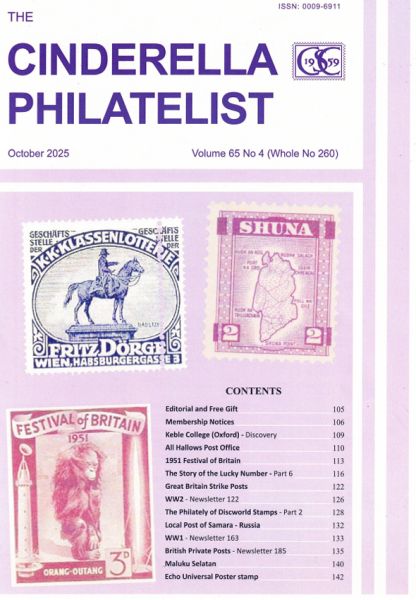Статьи, опубликованные в журнале «The Cinderella Philatelist»