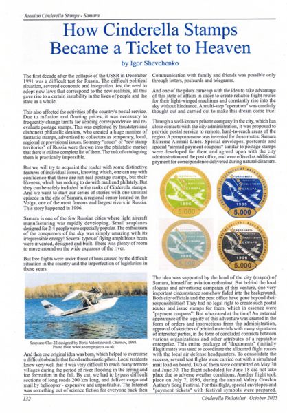 В октябрьском номере «The Cinderella Philatelist» опубликована статья о Самарских авиалиниях.