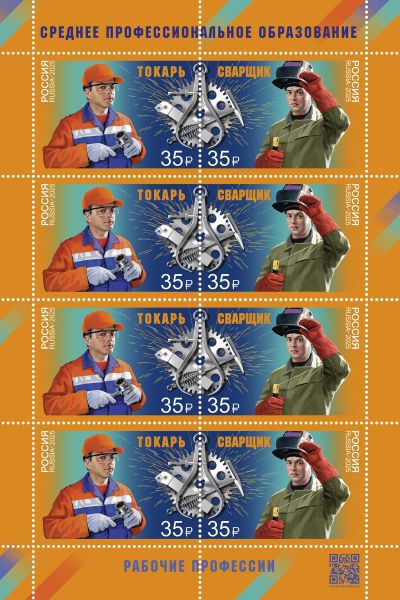 Представителям профессий среднего профессионального образования токарь и сварщик посвящен выпуск почтовых марок.