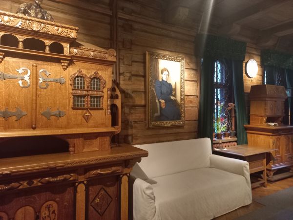 Хозяин дома очень любил русское народное искусство и вся обстановка в нем, включая печи, создавалась именно в этом стиле. Часть мебели была выполнена по рисункам Виктора Васнецова и его младшего брата Аркадия, а что-то куплено в антикварных лавках.
