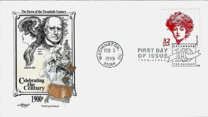Когда в конце ХХ века человечество готовилось отметить переход к новому тысячелетию, во многих странах мира вышли марки, отражавшие достижения человечества и страны-эмитента в разных областях. В США вышла серия блоков, посвящённых разным периодам ХХ века, и блок из пятнадцати марок, посвящённый культуре США 1900-х годов, содержал марку с изображением Гибсон-гёрл.