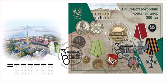 Почтовый блок 2024 г. № 3197. 300 лет Санкт-Петербургскому монетному двору.