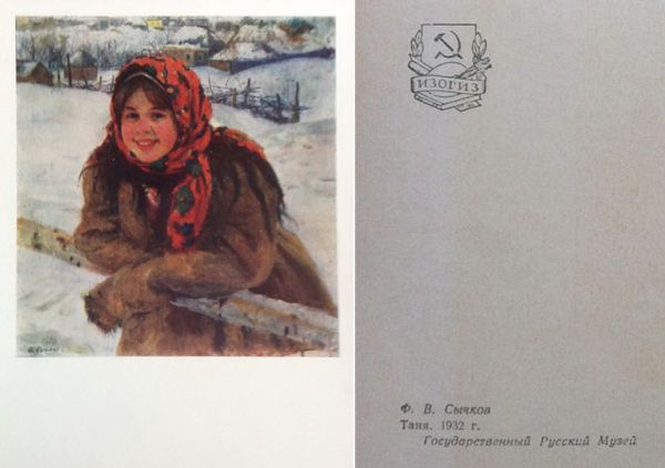 На почтовой марке СССР №3854 по рисунку Н. Присекина, выпущенной Министерством связи СССР в январе 1970 года, портрет этого художника приводится на фоне монохромного воспроизведения фрагмента картины «Катание с гор» (1937 год) из собрания Мордовской республиканской картинной галереи, носящей имя Федота Васильевича Сычкова.