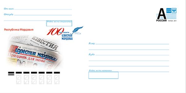 Столетнему юбилею газеты «Известия Мордовии» АО «Марка» посвящает евроконверт № 2018-106 «Республика Мордовия. 100 лет газете «Известия Мордовии» в оформлении Е. Коляды, вышедший 13 августа 2018 года.