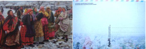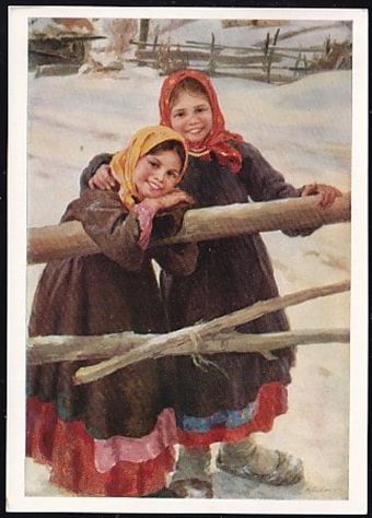Обратите внимание на то, что на полноцветной версии этого полотна, составившей лицевую сторону почтовой маркированной карточки Министерства связи СССР, напечатанной в 1962 году на Московской полиграфической фабрике Гознака, присутствуют фигуры второго плана — улыбающаяся девушка, держащая в руке верёвку санок, и поднимающийся в гору лыжник. Они отсутствуют на почтовой марке. Отличаются в двух версиях одного произведения и фигуры, виднеющиеся за поднятой рукой молодого человека, сидящего на вторых санях.