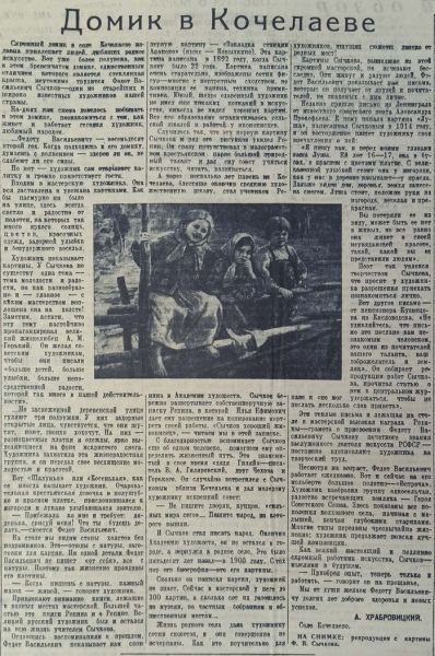 Приводится статья «Домик в Кочелаеве», посвящённая малой Родине художника в Пензенской губернии.