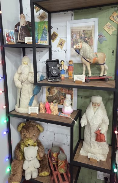 – Почему мы решили одной из тем взять советскую новогоднюю открытку? — рассказывает Елена Эдуардовна. – Прежде всего потому, что они очень добрые и светлые. Наши дети, кстати, это тоже очень чувствуют! Да и сама атмосфера в студии располагает к такому восприятию. У нас здесь постепенно образовалась целая музейная экспозиция артефактов из советского детства – игрушек, книжек, ёлочных украшений, карманных календариков, ну и поздравительных открыток, конечно. Мы неоднократно все это рассматривали.