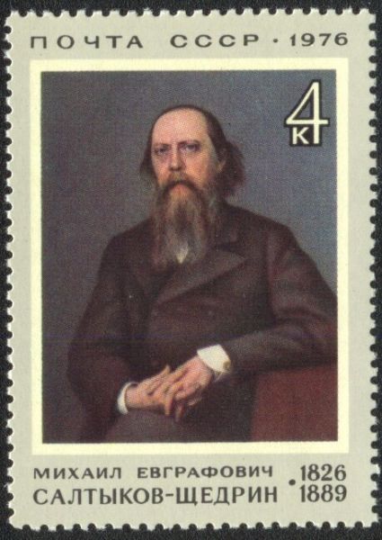 В 1976 году в связи со 150-летием со дня рождения М.Е. Салтыкова-Щедрина выходят почтовая марка и конверт с портретом писателя по картине Крамского.