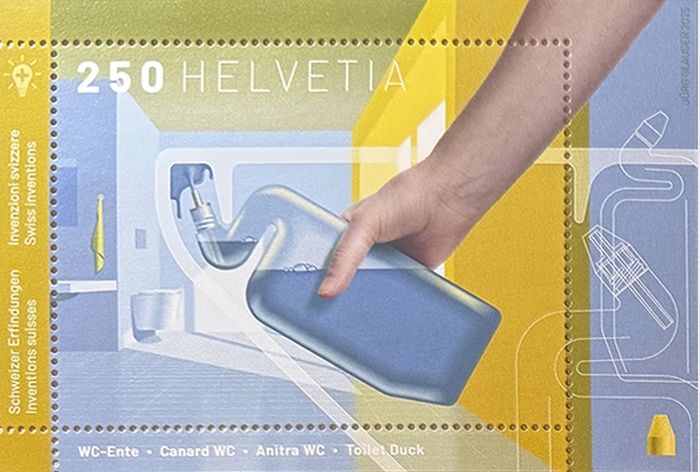 В 2025 году почта Швейцарии выпустила в обращение почтовый блок к 45-летию изобретения специальной бутылки для чистящего средства с изогнутым горлышком. Автор изобретения — Вальтер Дюринг Орлоб — занялся разработкой столь необычного товара не случайно. Его мать пробовала вести бизнес в разных сферах, в том числе пробуя внедрять на рынок собственные разработки. Одной из них было чистящее средство для сантехники, формулу которого она самостоятельно вывела опытным путём. В 1964 к её бизнесу присоединился сын, который в какой-то момент решил, что чистящему средству нужна упаковка, которая позволит легко наносить его в самые труднодоступные места.