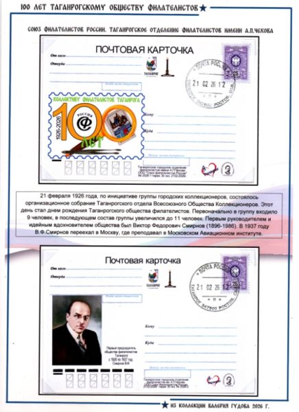 Этот день стал днем рождения Таганрогского общества филателистов. Первоначально в группу входило 9 человек, в последующем ee состав увеличился до 11 человек. Первым руководителем и идейным вдохновителем общества был Виктор Федорович Смирнов (1896-1986).