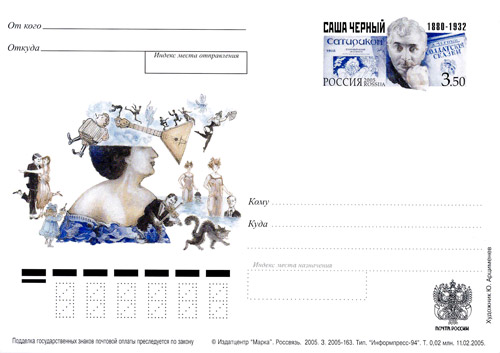В 2005 году вышла карточка с оригинальной маркой, посвящённая 125-летию со дня рождения Саши Чёрного. Художник Ю. Арцименев.