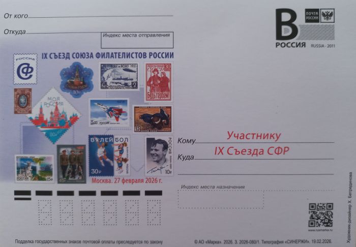 27 февраля 2026 года в Москве прошел очередной IX съезд Союза филателистов России, в рамках работы которого состоялись выборы президента СФР, вице-президентов и Президиума Исполнительного Совета Союза. Также участники ознакомились с результатами работы организации за отчётный период и дали оценку деятельности СФР.