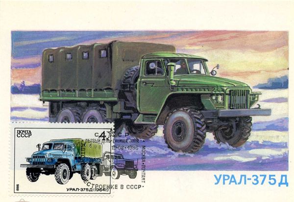 В 1986 году вышла серия марок «Автомобилестроение в СССР». Среди отечественных автомобилей представлен и «Урал – 375Д».