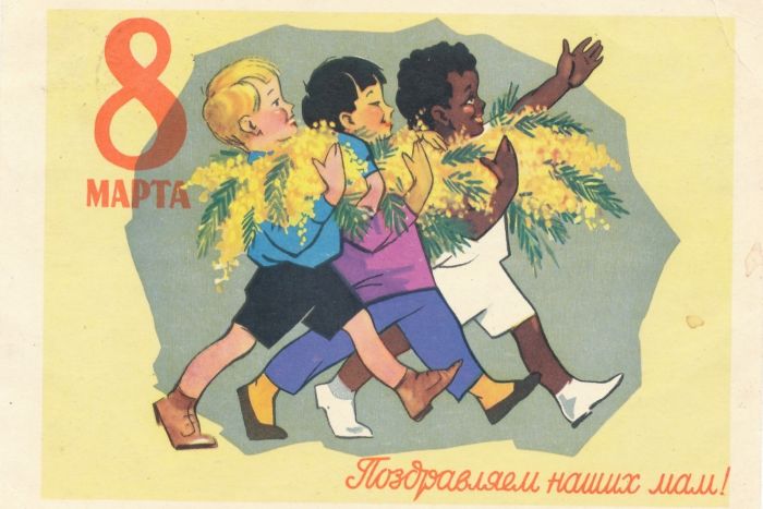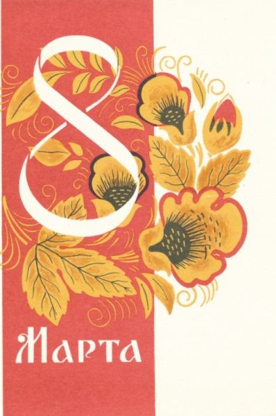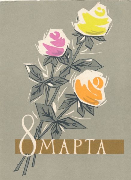 В 1966 году праздник 8 Марта стал официальным выходным днём. А образы строительниц коммунизма обрели более утончённые и женственные черты. С того времени укоренилась традиция — дарить дамам цветы. Особой популярностью пользовались тюльпаны и мимоза, которые символизируют приход весны. Эти цветы украсили и поздравительные открытки.