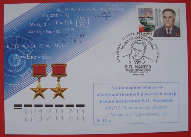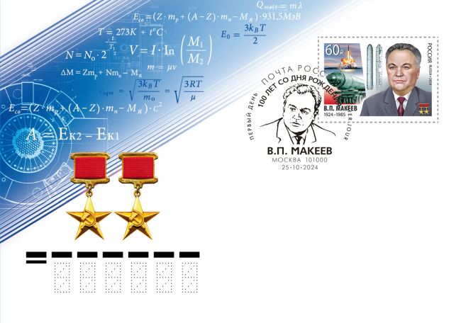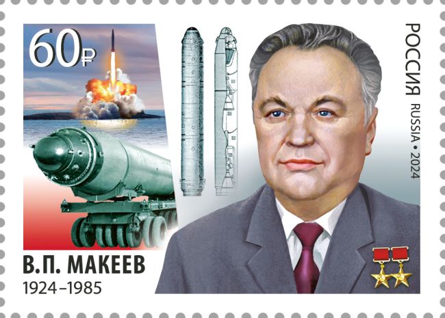 100 лет со дня рождения В.П. Макеева (1924–1985), создателя отечественной школы морского ракетостроения, дважды Героя Социалистического Труда. Художник-дизайнер – Егиазарян А.