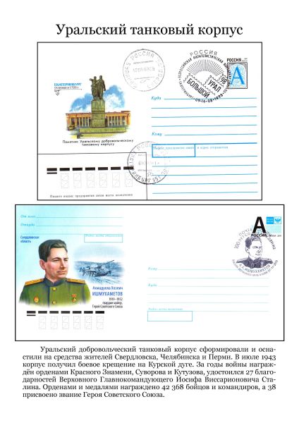 Уральский добровольческий танковый корпус сформировали и оснастили на средства жителей Свердловска, Челябинска и Перми. В июле 1943 года корпус получил боевое крещение на Курской дуге. За годы войны награжен орденами Красного Знамени, Суворова и Кутузова, удостоился 27 благодарностей Верховного Главнокомандующего И.В. Сталина. Орденами и медалями награждено 42368 бойцов и командиров, а 38 присвоено звание Героя Советского Союза.