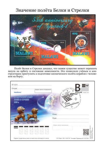 19 авrуста 1960 года ракета-носитель вывела на орбиту космический корабль с собаками Белкой и Стрелкой на борту. Для наблюдения за состоянием и поведением собак в космосе впервые использовалась телевизионная система.