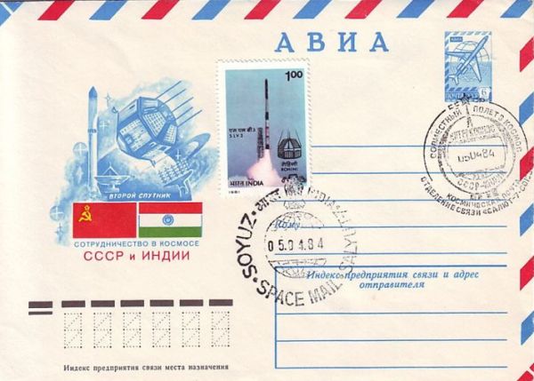 Такой была космическая почта совместного международного советско-индийского полета первого космонавта Индии Ракеш Шарма.