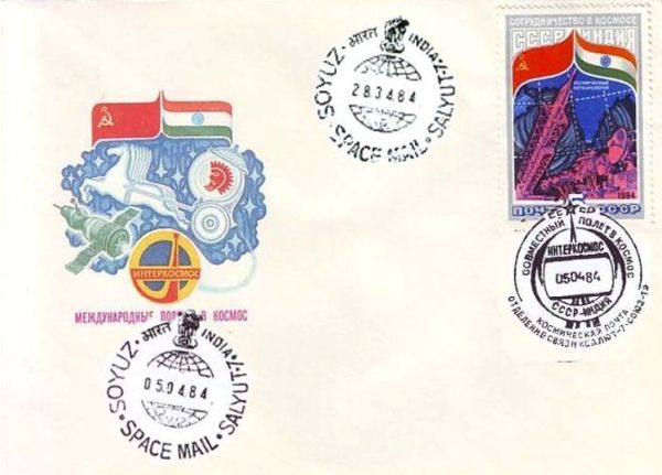 Кроме того, на станцию было доставлено около 20 советских и индийских почтовых конвертов, специально подготовленных и посвященных данному полёту. На советском конверте была наклеена марка номиналом 5 копеек. На немаркированном индийском конверте — марка номиналом 3 рупии. Как правило, большинство таких конвертов было адресовано различным организациям, музеям или подарено государственным официальным лицам.