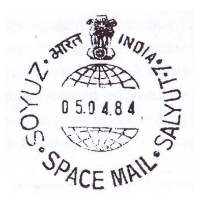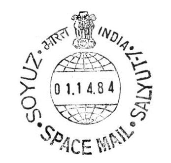 С индийской стороны на станцию был доставлен почтовый штемпель с переводной календарной датой, на котором изображен государственный герб Индии над земным шаром. На штемпеле имеется текст на английском языке: «СОЮЗ. КОСМИЧЕСКАЯ ПОЧТА. САЛЮТ-7» и название страны на хинди и английском языках.