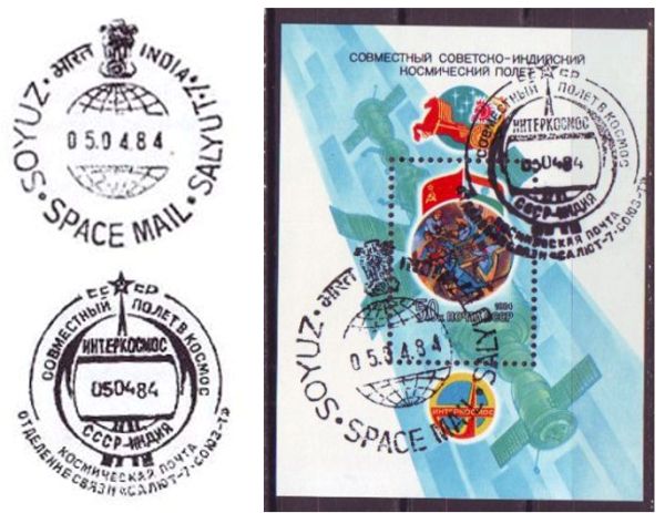 Советско-индийская экспедиция посещения корабля «Союз Т-11» доставила на станцию различные конверты с космическими сюжетами, которые использовались для гашения этими почтовыми штемпелями. В основном это были немаркированные конверты первого дня СССР (FDC) с наклеенными космическими марками.