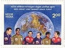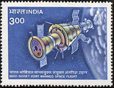 Говоря о филателии советско-индийского полёта следует упомянуть о почтовых марках Индии, ему посвященных. Почтовое ведомство страны, готовясь к предстоящему полёту, планировало выпустить две марки. Первая марка, с изображением орбитального комплекса «Союз-Салют-Союз», была выпущена номиналом 3 рупии.