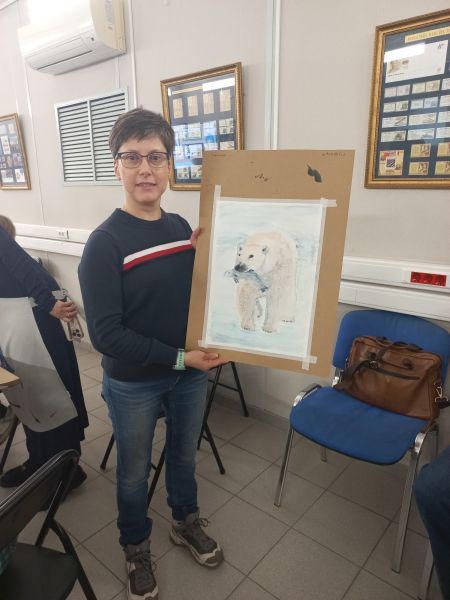 Мазок за мазком, и вот мы выполнили свою миссию: еще один белый медведь застыл в акварельных штрихах.