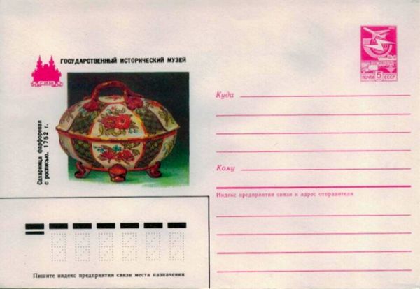 28 мая 1985 года на Пермской фабрике Гознака был напечатан маркированный конверт (каталог Лапкина SU ASE85-288) по рисунку Г.Серебрякова, на котором запечатлён экспонат Государственного исторического музея – фарфоровая сахарница с росписью 1752 года изготовления.