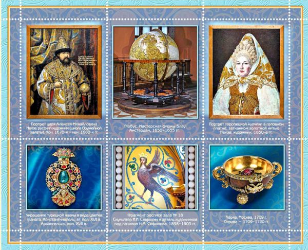 Кроме вышеупомянутого почтового блока коллекционеры оценили симпатичную виньетку с изображением шести из головокружительного множества экспонатов Исторического музея.