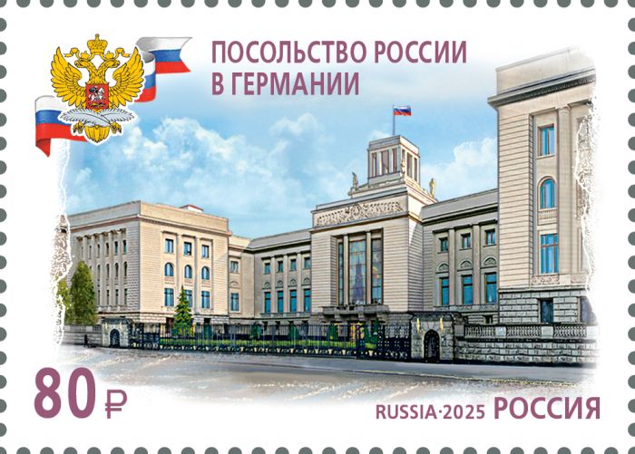 На почтовых марках изображены здания Генконсульства России в Стамбуле, Посольства России в Германии и Посольства России в Уругвае.