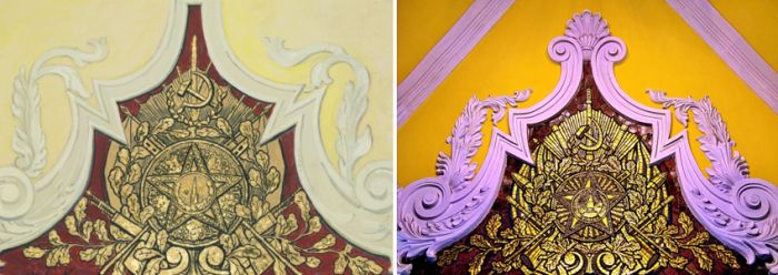 И над всем этим – герб СССР, хорошо заметный на эскизе торцевой стены.