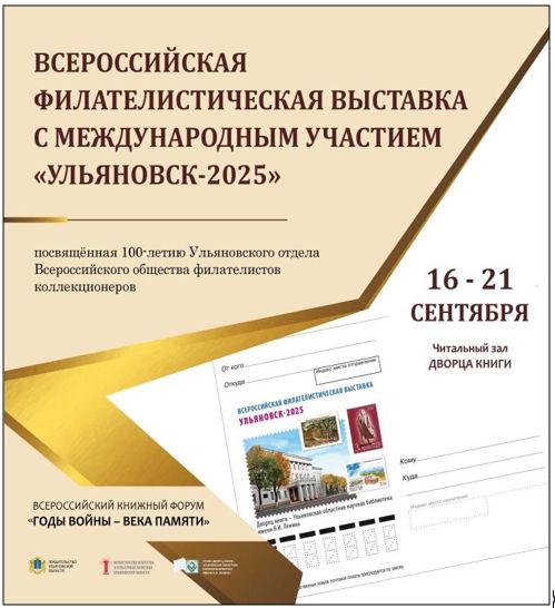 С 16 по 21 сентября 2025 года во Дворце книги прошла Всероссийская филателистическая выставка «Ульяновск-2025» с международным участием, посвящённая 100-летию Ульяновского отдела Всероссийского общества филателистов/коллекционеров.