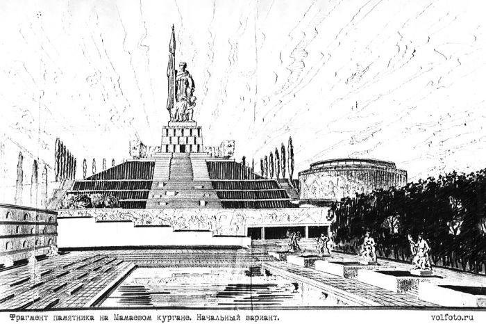 Практически сразу после разгрома немецких войск под Сталинградом, было принято решение увековечить подвиг советских солдат. Комитет по делам архитектуры при Совнаркоме СССР и Союзом советских архитекторов объявили конкурс на эскиз проекта главной площади Сталинграда с монументом героическим защитникам города. Победителям предполагалось выплатить, не малую по тем временам, премию от 5 до 20 тысяч рублей.