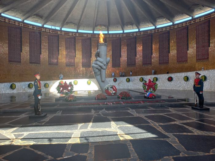 У Вечного огня и на выходе из пантеона, с января 1968 года, с 9 утра до 8 вечера, стоит Почетный караул. Это солдаты 46-й стрелковой (элитной) роты Почётного караула Волгоградского гарнизона.