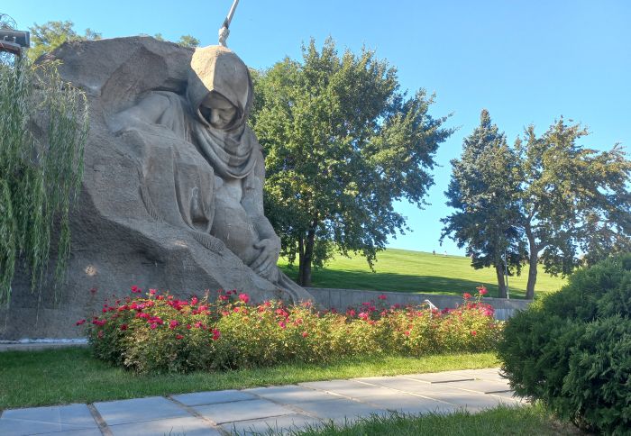 У подножья Мамаева кургана жители, тогда еще Сталинграда, разбили парк Победы, высадив в память о защитниках города десятки деревьев — каштаны, акацию, клены, ивы, ели, тополя. Рядом установлены таблички с именами погибших.