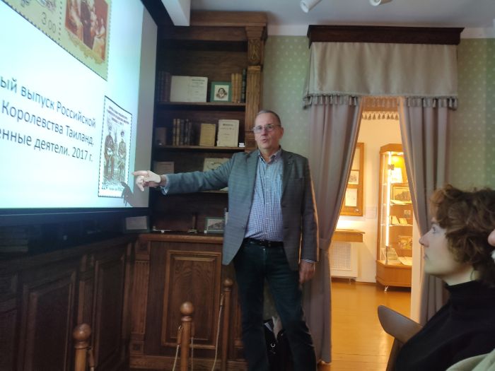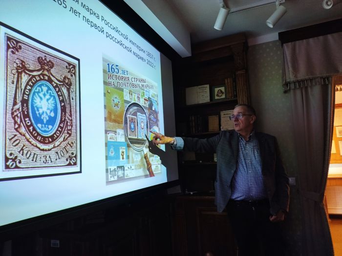 Алексей Анатольевич продемонстрировал красочную презентацию «История России. Династия Романовых на почтовых марках», сделав таким образом отсылку к прошедшим накануне «Х Ольденбургским чтениям» — ежегодной научной конференции, на которой в этом году впервые была введена секция филателии и филокартии.