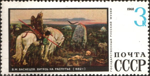 Марка добровольного сбора жертвам войны 1914 года. Художник В. М. Васнецов.