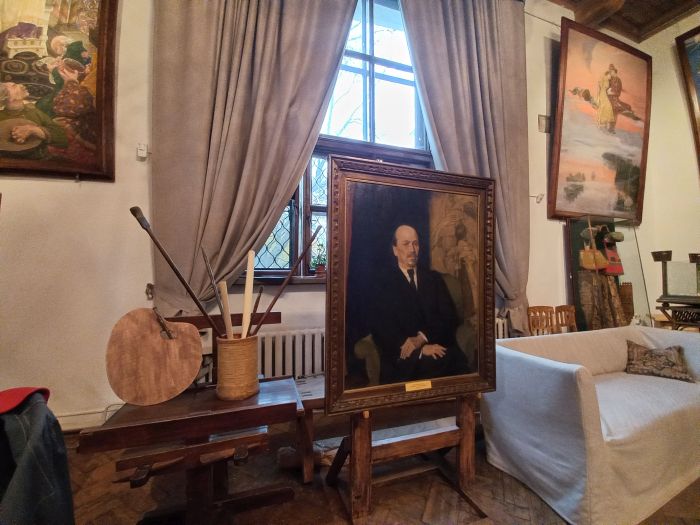 В этом доме Виктор Михайлович жил и работал до конца своей жизни. На столике остались его кисти, а рядом, на мольберте — портрет Михаила Васильевича Нестерова. Художник не успел его закончить...