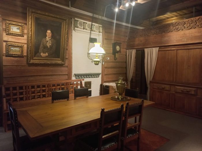На первом этаже располагались столовая, гостиная, спальня Александры Владимировны и комнаты детей.
