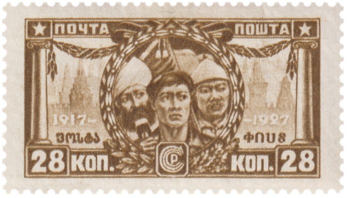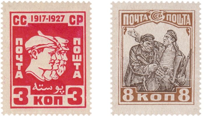 В следующий раз специальным почтовым выпуском была отмечена 10-я годовщина Октябрьской революции. Серия из 7 марок была выпущена 1 октября 1927 года. Над ней работали сразу 6 художников.