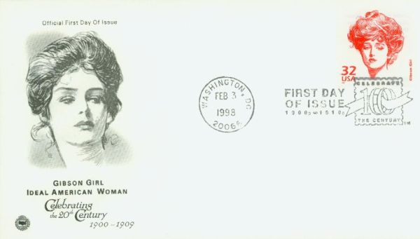 Когда в конце ХХ века человечество готовилось отметить переход к новому тысячелетию, во многих странах мира вышли марки, отражавшие достижения человечества и страны-эмитента в разных областях. В США вышла серия блоков, посвящённых разным периодам ХХ века, и блок из пятнадцати марок, посвящённый культуре США 1900-х годов, содержал марку с изображением Гибсон-гёрл.