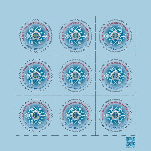 Юбилей научно-технической разведки оригинально показан на круглой почтовой марке.