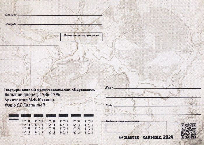 — Я много печатаю карточек с авторских снимков с согласия авторов. Мне их специально присылают. К примеру, авторская фотография для картмаксимума к юбилею ГМЗ «Царицыно». Она любезно предоставлена самим сотрудником музея из личного архива для изготовления макета. Комментарий сотрудника ГМЗ «Царицыно»: «Кстати, все официальные филателистические выпуски ‒ блок, КПД и штемпель — были разработаны при активном участии научных сотрудников и дизайнеров самого музея».