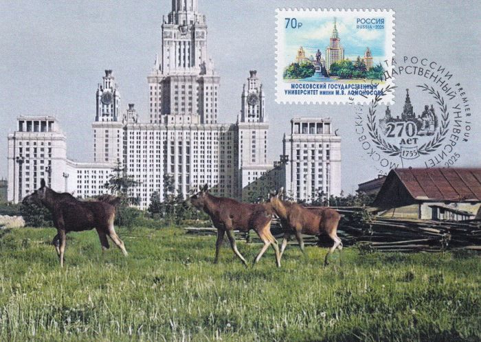 Вот лоси на фоне университета. Раритетную фотографию МГУ восстанавливал несколькими облачными нейросетями.