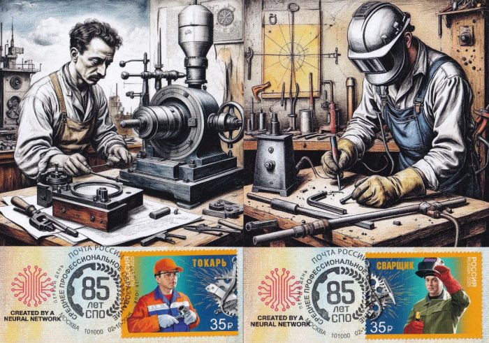 — «Исполнено нейросетью». Как на карточках, посвященных рабочим профессиям.