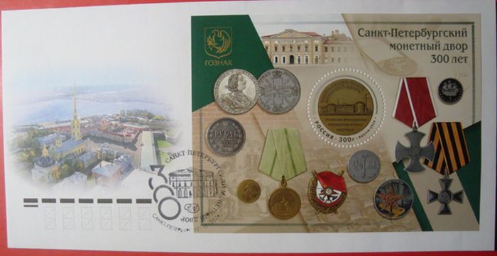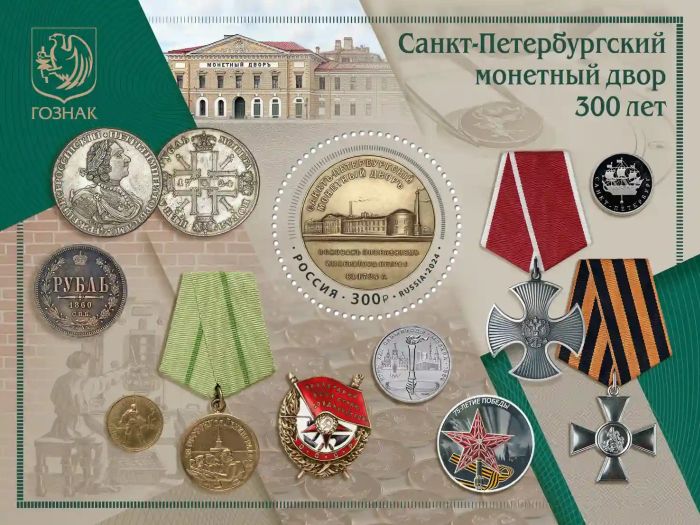 Почтовый блок 2024 г. № 3197. 300 лет Санкт-Петербургскому монетному двору.